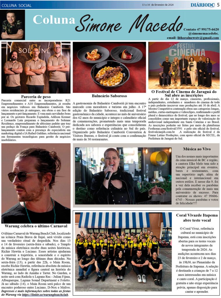 Coluna Social Simone Macedo – 13 a 16 de fevereiro de 2026