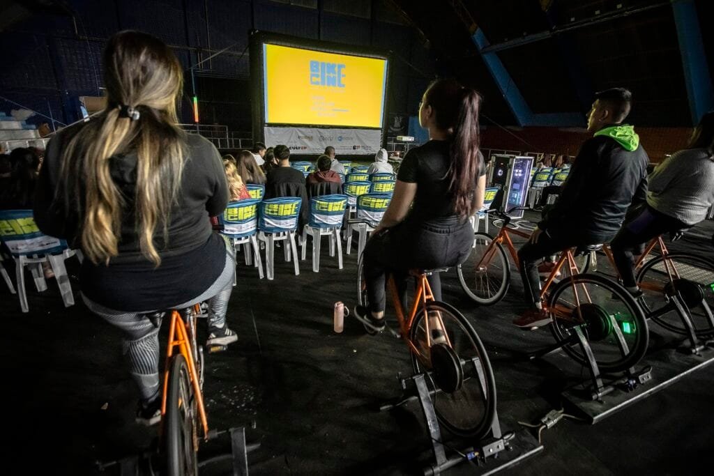 Cinema ao ar livre movido a energia limpa de bicicletas estreia em Penha (SC)