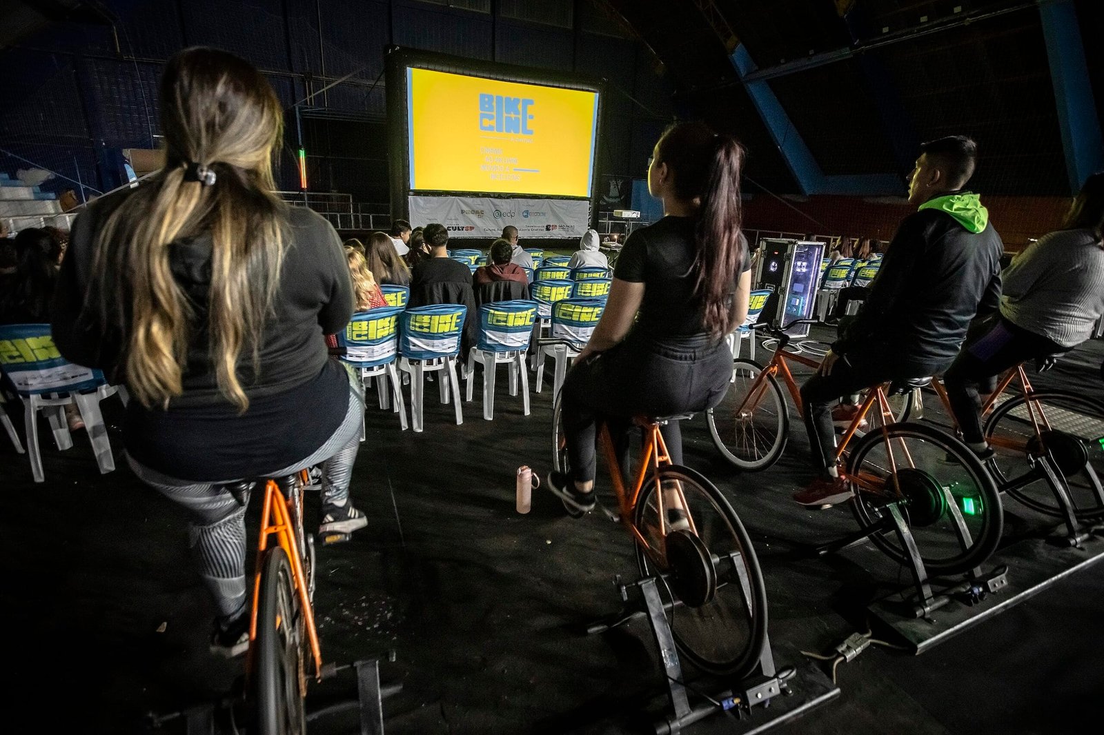 Em vez de usar energia elétrica tradicional, o cinema funciona apenas pelas pedaladas dos participantes. As bicicletas estão ligadas a um sistema que transforma o movimento das rodas em eletricidade, por meio de um gerador. Essa energia abastece todos os equipamentos da sessão, como a tela inflável, projetor e o som, o que garante o funcionamento completo do cinema sem depender da rede elétrica, sem emissão de poluentes e sem causar impactos ao meio ambiente.