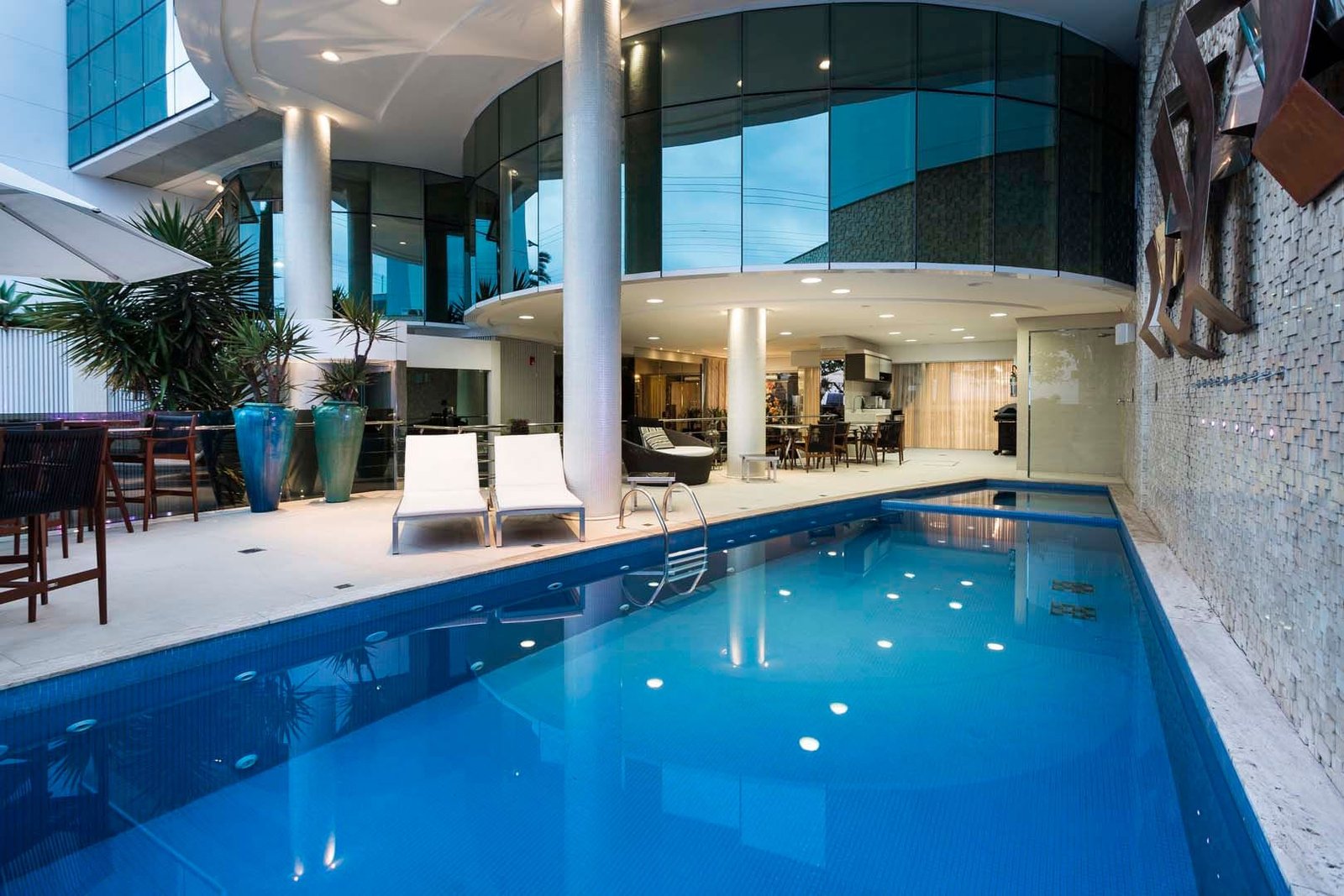 No piso superior, a área de lazer privativa é um espetáculo à parte. Com piscina frontal, hidromassagem com cromoterapia, espaço gourmet com churrasqueira automatizada e adega particular, o ambiente foi projetado para reunir família e amigos com todo o conforto. Os grandes vãos de vidro, que percorrem os ambientes, permitem a ventilação natural e criam a sensação de estar em perfeita sintonia com a natureza. O acesso ao segundo pavimento é facilitado pelo elevador privativo, que conecta os dois níveis da cobertura com praticidade e acessibilidade.