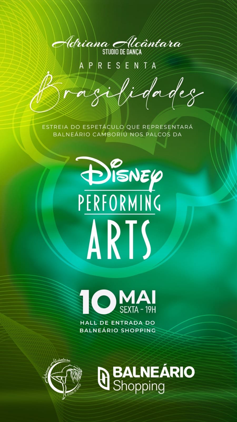 Espetáculo de dança “Brasilidades” do Estúdio de dança Adriana Alcântara – que será apresentado durante o Disney Performance and Arts – terá sua estreia no Balneário Shopping no dia 10 de maio às 19h. Os alunos do Studio de Dança Adriana Alcântara levarão identidade aos palcos uma celebração da brasileira por meio da linguagem da dança, com expressões únicas da música brasileira e ritmos envolventes como samba , xotê , capoeira , bossa nova e baião .