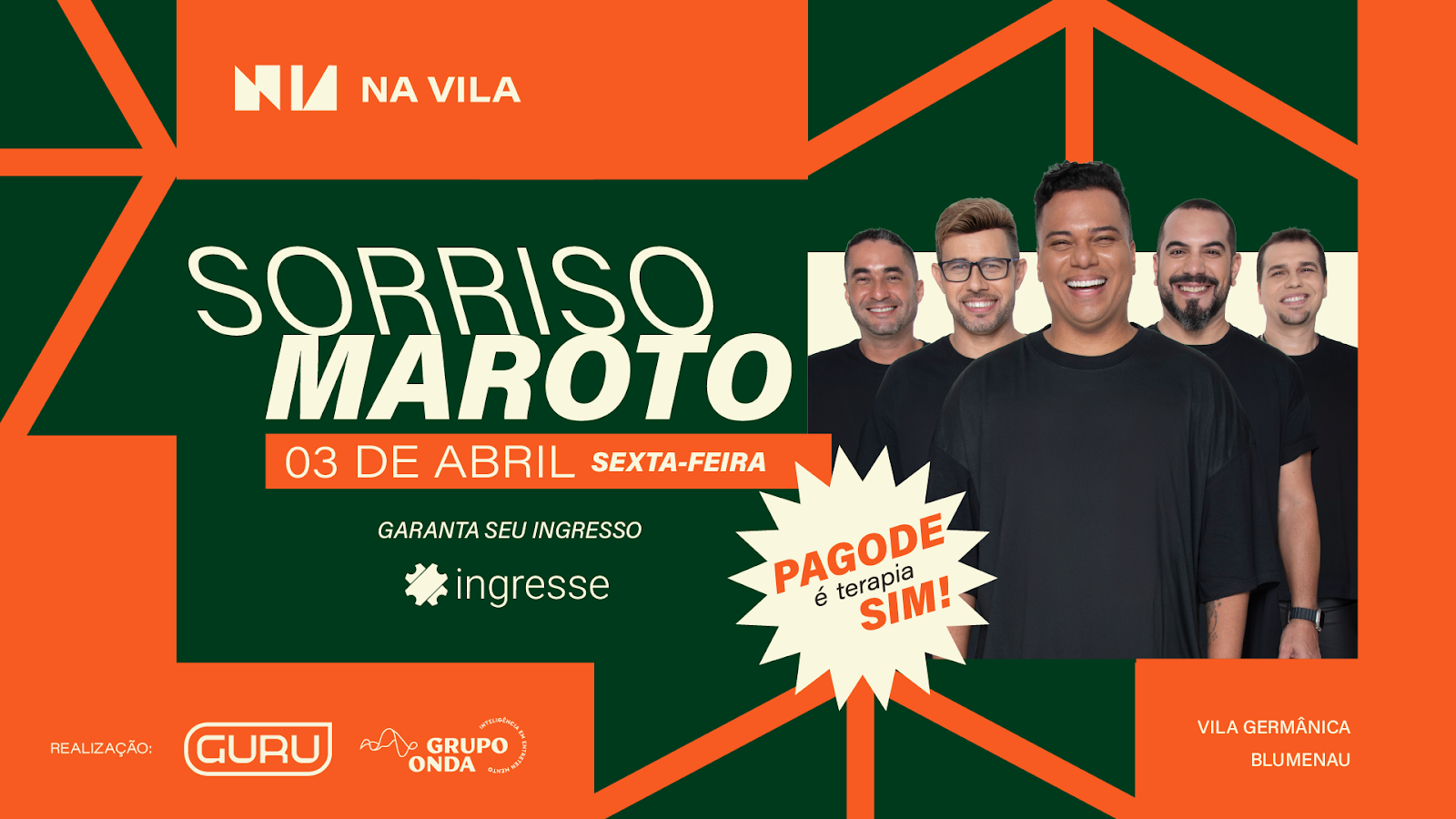Criado no Rio de Janeiro e com quase três décadas de carreira, Sorriso Maroto é a maior referência do pagode romântico no país. Com números expressivos de público, projetos consagrados e turnês esgotadas, o grupo chega a Blumenau para um show que marca o início de um novo capítulo na forma de viver grandes eventos na cidade.