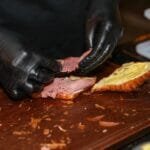 Um prato que pode ser parecido, mas remete a outra receita dos antepassados colonizadores de Blumenau é o oferecido pelo Aroma Café: um sanduíche de pastrami com picles crocantes, mostarda Dijon e um molho especial. “Estamos conquistando clientes com opções além do tradicional hamburger, afirma o sócio Giovane Eufrásio.