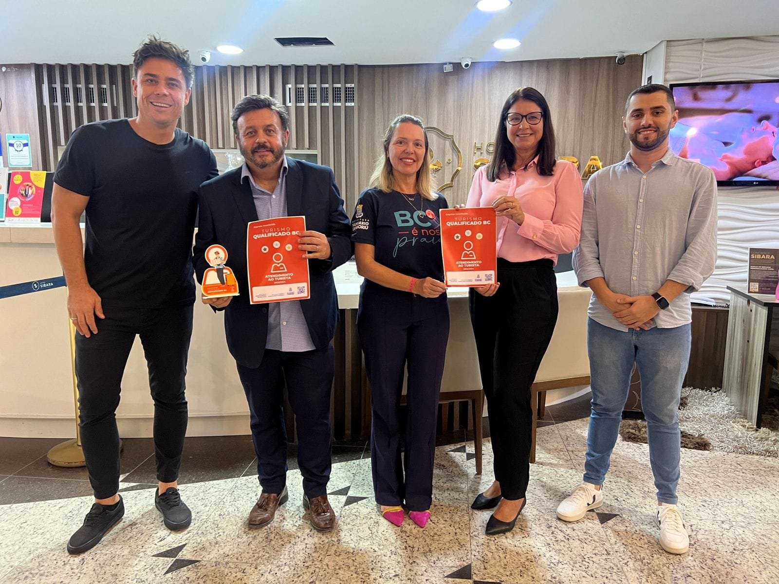 Os primeiros estabelecimentos contemplados com o Selo de Atendimento ao Turista receberam a certificação do Programa Selo Turismo Qualificado BC nesta segunda e terça-feira (6 e 7). A Secretaria de Turismo e Desenvolvimento Econômico de Balneário Camboriú entregou o selo, na Categoria Ouro , ao Camboriú Praia Hotel , Grupo Oceanic (Oceanic Aquarium, Classic Car Show, Aventura Pirata e a Aventura Jurássica), Pousada Morada do Estaleiro , Hotel Sibara e Hotel Marimar .