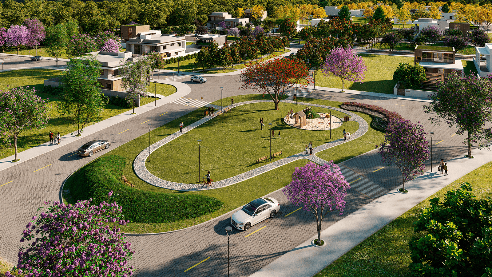 Outro destaque do empreendimento é o compromisso com a infraestrutura sustentável. O bairro-cidade contará com uma Estação de Tratamento de Esgoto (ETE) própria, o que garante eficiência no descarte de resíduos e minimiza impactos ambientais. Além disso, o planejamento urbano contempla cabeamento subterrâneo, mobilidade inteligente e amplas áreas verdes para criar um ambiente mais harmonioso e alinhado às demandas modernas por preservação ambiental.